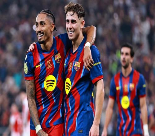 西班牙超级杯决赛展开争夺,巴萨对阵皇马。上半场,拉菲尼亚禁区首开纪录,维尼修斯一条龙破门,莱万多夫斯基单刀挑射破门,贡萨洛-加西亚扳平比分。下半场,维尼修斯兜射被扑出,亚马尔